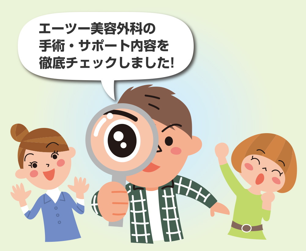 手術方式、手術代はもちろん、相談窓口の対応など、エーツー美容外科がどういうクリニックか一目瞭然です。