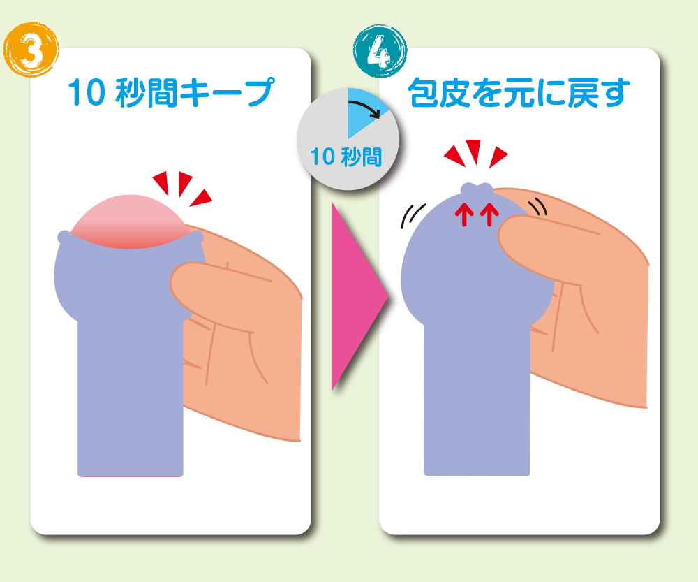 そうすることによって、包皮が常に剥けている状態が癖付けされて、包茎でなくなるというわけです。
