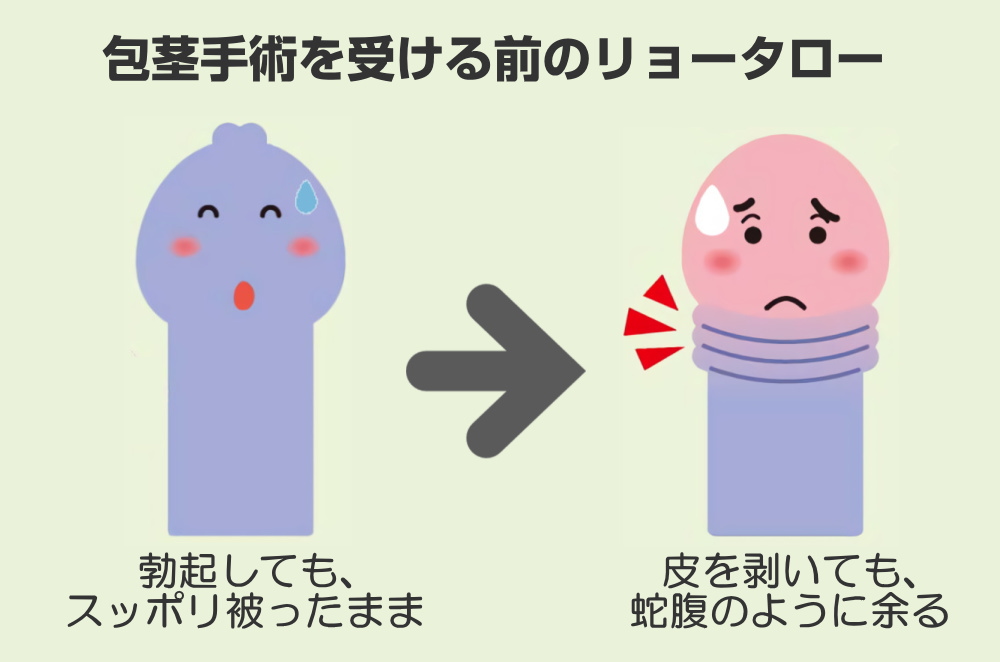 ですので、イラストでリョータローのペニスがどのように変わったのか、手術前と手術後の状態を紹介しておきたいと思います。