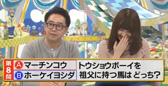 その中で、「トウショウボーイを祖父に持つ馬はどっち?」という2択問題があったんですが、選択肢が次の2つでした。